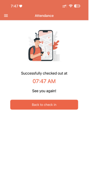- After checking out the time of check-out will be displayed.