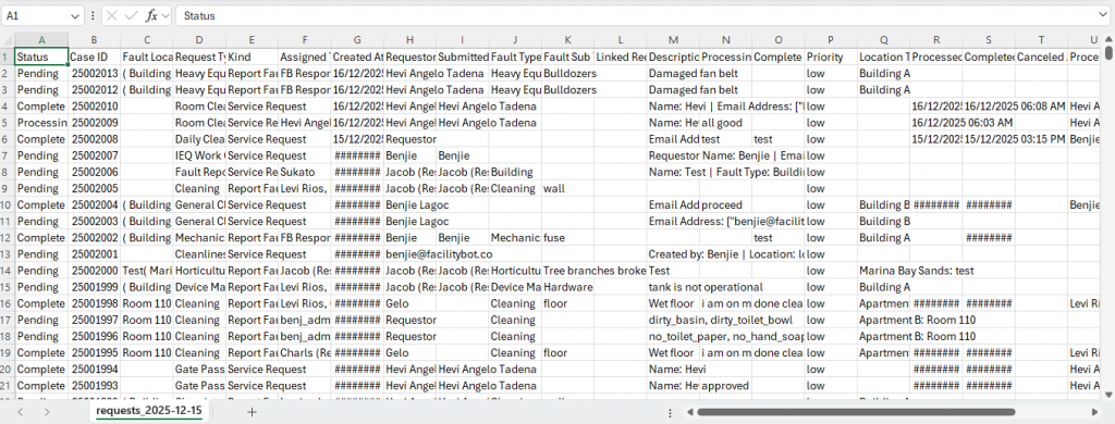 Configurable CSV Export in FacilityBot gives teams flexibility and consistency when exporting request data. By allowing users to select, reorder, and standardize export fields, the feature reduces manual spreadsheet work, improves reporting accuracy, and ensures CSV outputs are tailored to operational, financial, and compliance needs across the organization.