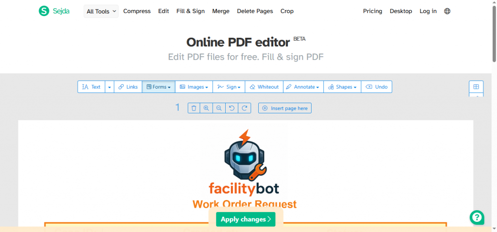 We recommend configuring the fillable PDF with a dedicated PDF editor (Adobe Acrobat, PDFfiller, Sejda (https://www.sejda.com/pdf-editor), etc.) before upload. Follow these rules so FacilityBot maps correctly: