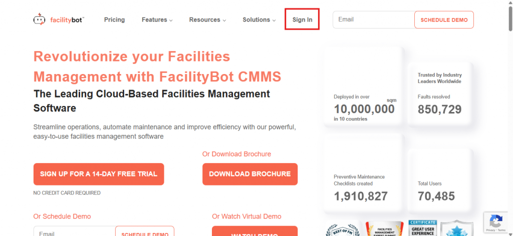 - Log in to the FacilityBot Web Portal.
