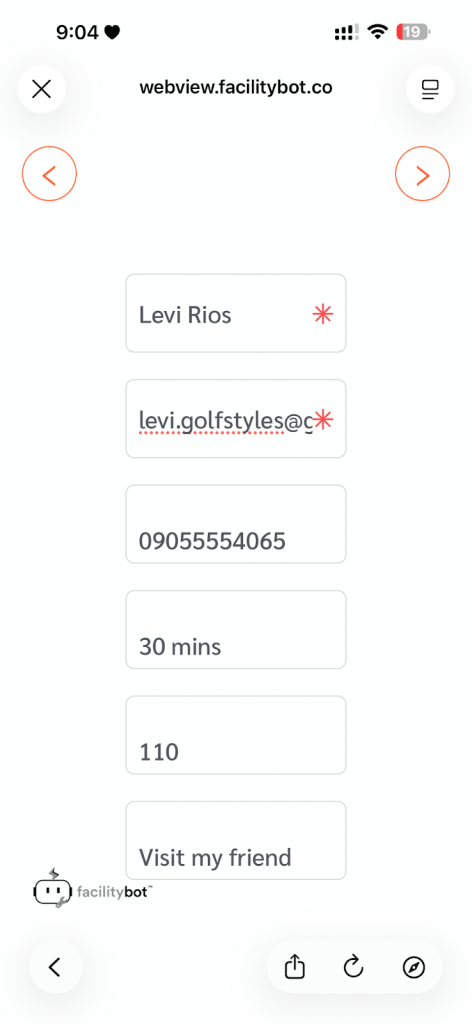 - The system automatically opens the Visitor Registration Web View (Tablet URL) in the visitor’s mobile browser.