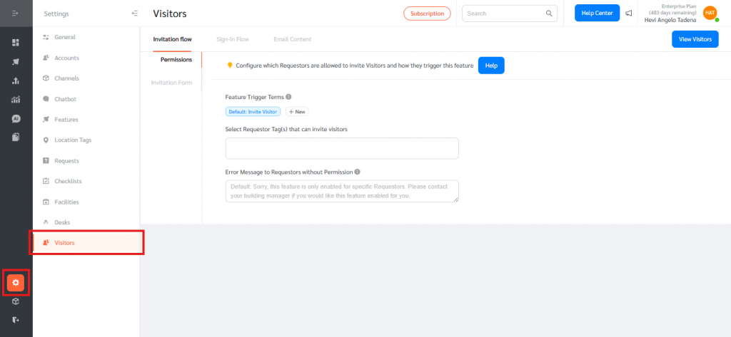 - Navigate to Settings → Visitors.