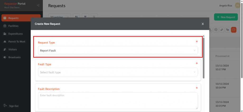 Requests are tickets that are created when a Requestor makes a demand that requires human intervention, such as Fault Reports or Service Requests. This article outlines steps to create a new request in the Requestor Web Portal.
