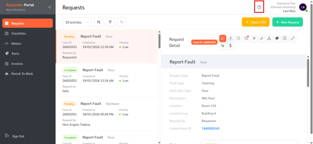 Step 2: After signing in, click the Help Icon on the upper right of the screen