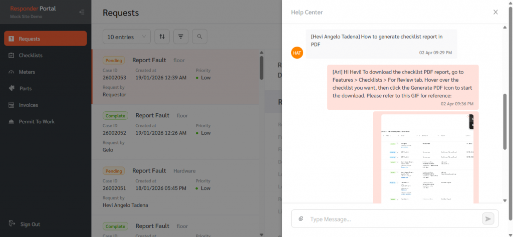 Step 3: Type in questions and wait for a member of the FacilityBot Customer Success team to reply.