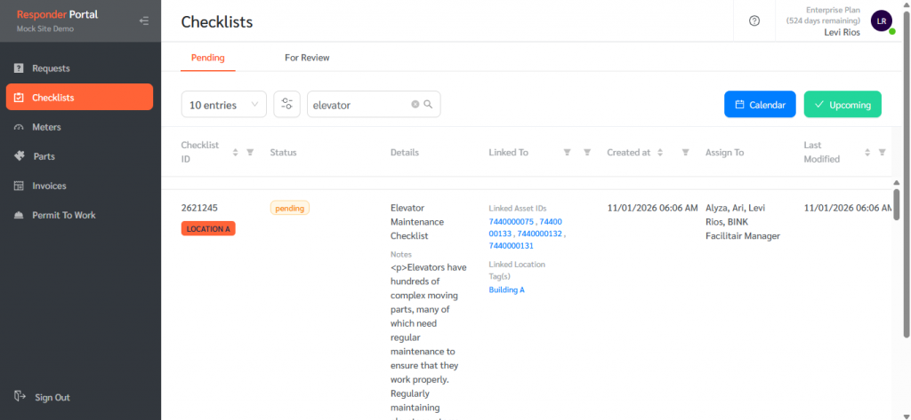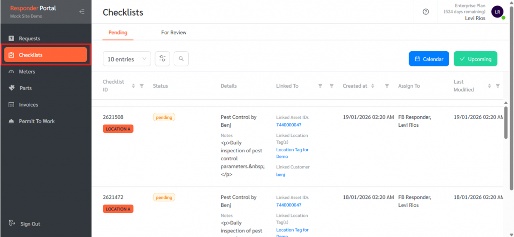 In order to look for checklists in the Responder Portal, follow the guide below: