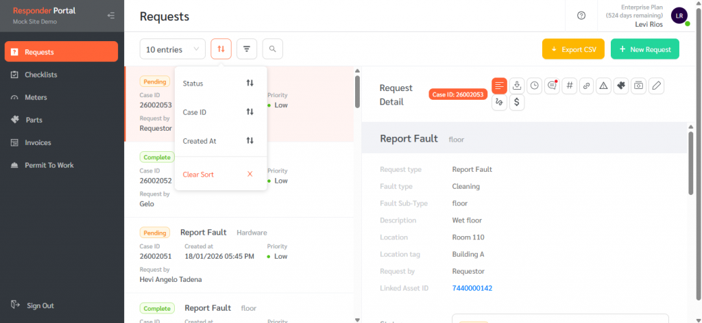 Step 3: You can sort based on status, case ID, and the time the request has been created.
