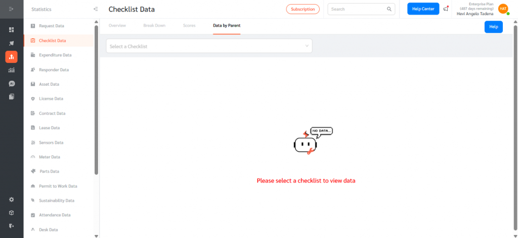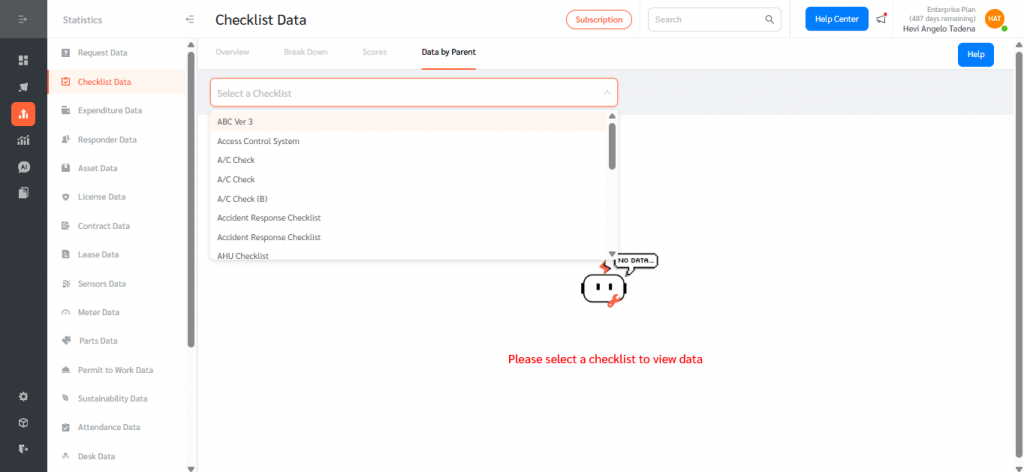 - Navigate to Statistics, then Checklist Data.